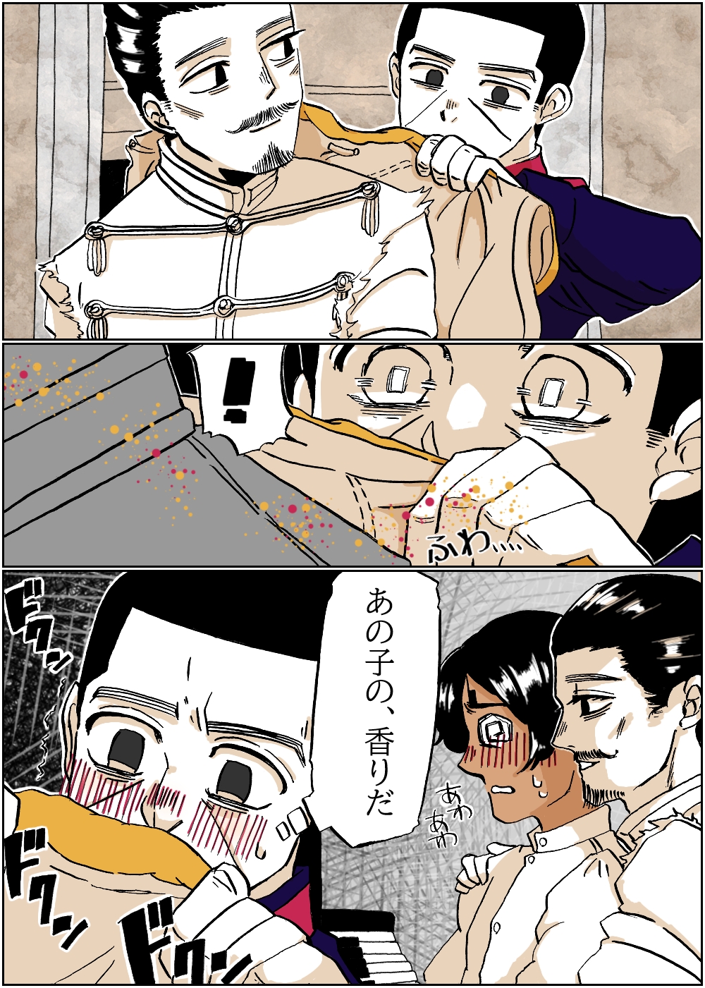 前回の18禁はハジメさんの皮余りち〇ぽ(※超重要。ある程度大きくなっても、まだ皮があまっていて、剥いてあげると中から匂いと、たまった先走りが出てくるのが良いと思います。おれは昔どこかで読んだ、あの頃の兵舎の入浴は2日に1回だったと。多いよね。2日目のいろいろアレなち〇ぽを尺するのが音之進くん好きなんだよね、月島が「アッ、待ってください、今日風呂ですから」ってあたふた言うのを、うるさい、だから来たのだ。って押しのけて尺してくれ)描けて満足だった。
